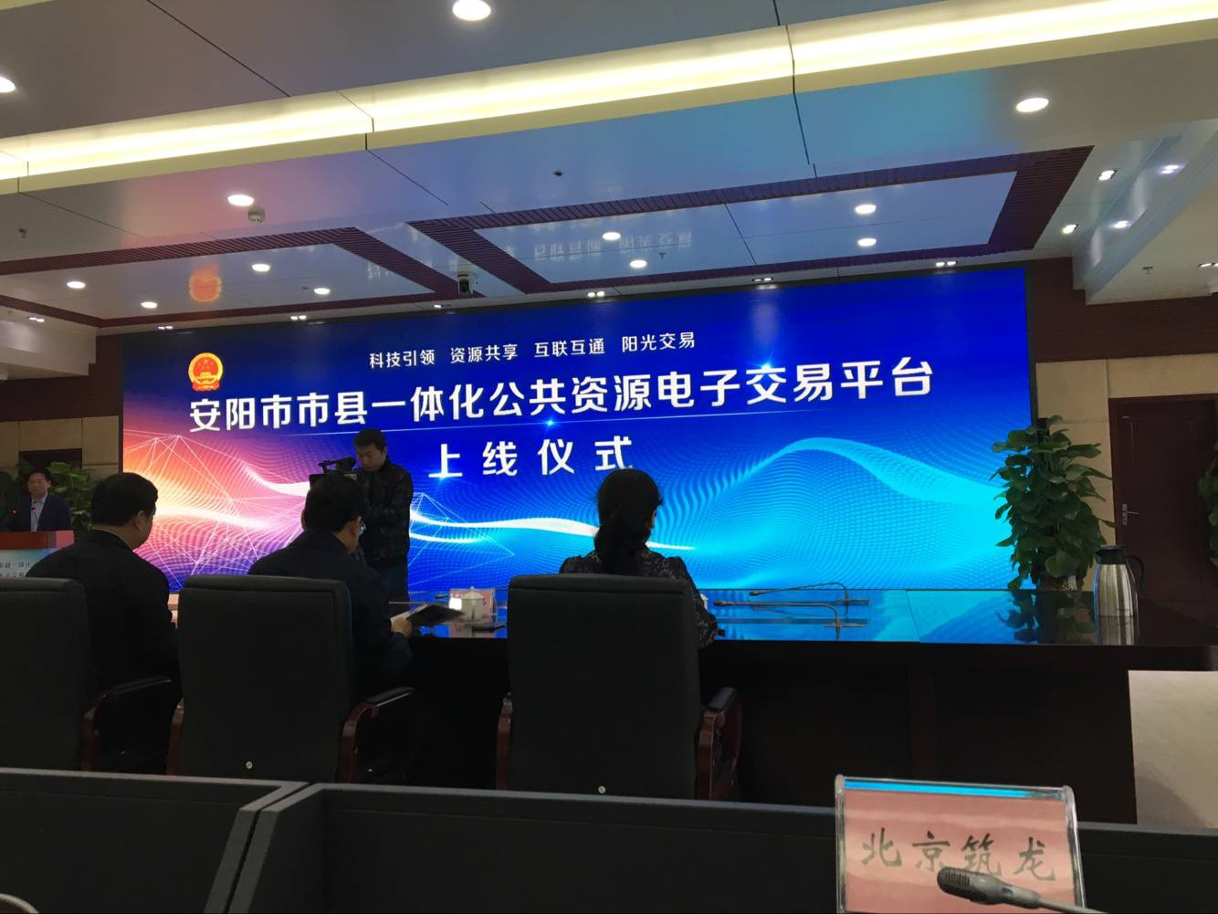 2017年10月,“安陽市公共資源交易市縣一體化電子平臺”成功上線,該平臺是河南省首個公共資源交易市縣一體化電子平臺,也是北京筑龍信息技術(shù)有限責任公司在河南省承建的首個市縣一體化電子化平臺建設項目。儀式的成功舉行標志著安陽市公共資源交易邁入全流程電子化交易新時代。